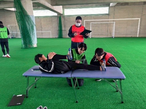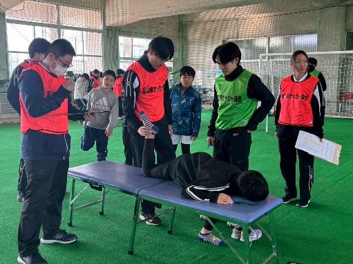 学生はスタッフとして参加させて頂き、指導者の指導の下、フィジカルチェックとその記録をしました。また、結果を踏まえてストレッチやトレーニング方法の指導に参加させて頂きました。実際にイベントに参加させて頂いたことで、評価の実践を経験すると共に選手の身体やスポーツでの悩みや疑問を聞く貴重な機会になったと思います。また、選手とトレーナーとしての関りだけでなく、医師や薬剤師、栄養士の専門職の方々の役割についても学び、選手を中心に多職種で介入することを考える機会になったと思います。