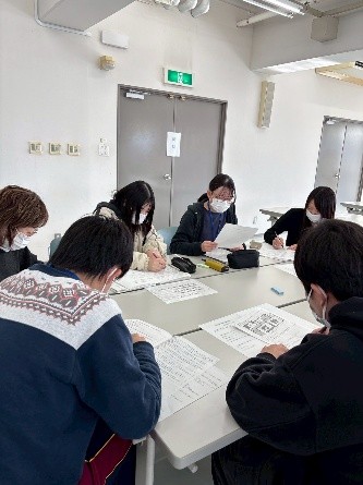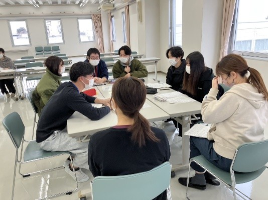 交流会では、学生と講師が3つのグループに分かれ、多職種チームとして事例検討を進めました。各職種が専門的な視点から事例の状況や本人の希望を読み取り、情報を共有しながら目標(ゴール)と支援計画を立案しました。講師の先生方からは、目標・計画立案への助言に加え、現場での経験や専門職としての視点、多職種連携の意義についてもお話しいただきました。