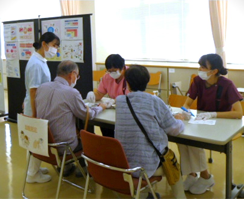 看護師の資格を持つ教員と看護学科の学生が、血糖値・血圧測定・SPO2などの測定をし、皆さんの健康チェックを行います。