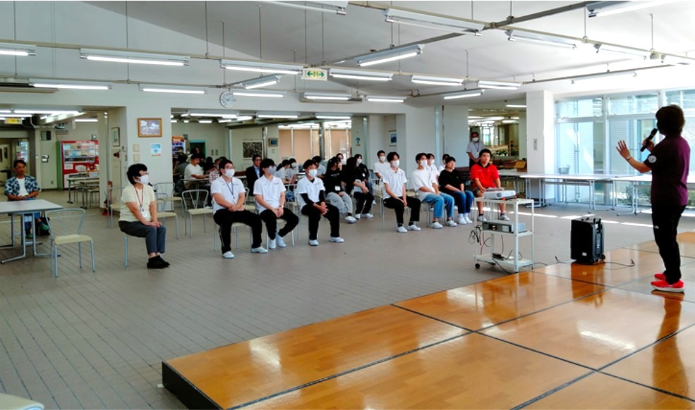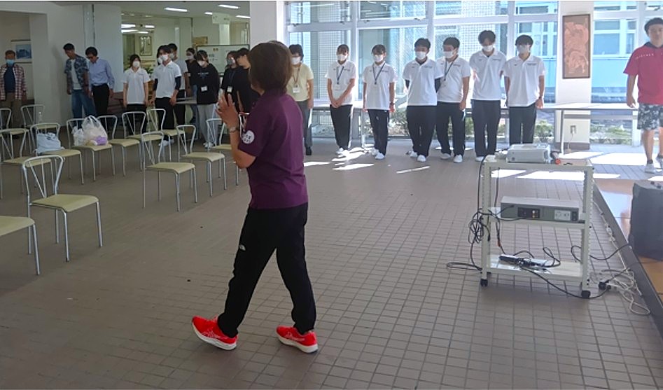 看護学科では、1年生が体育の授業で田中先生の講義を受けており、思い出しながら参加していたようです。(参照:授業紹介「保健体育 ウォーキング」)