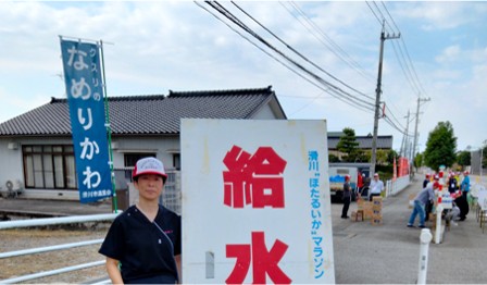 10月12日(日)、本校の所在地である滑川市において「第28回ほたるいかマラソン」が開催されました。 今年も看護学科の教員が救護係として参加協力し、給水所を含む4か所のポイントにそれぞれ1名ずつ配置され、ランナーの安全確保に努めました。
