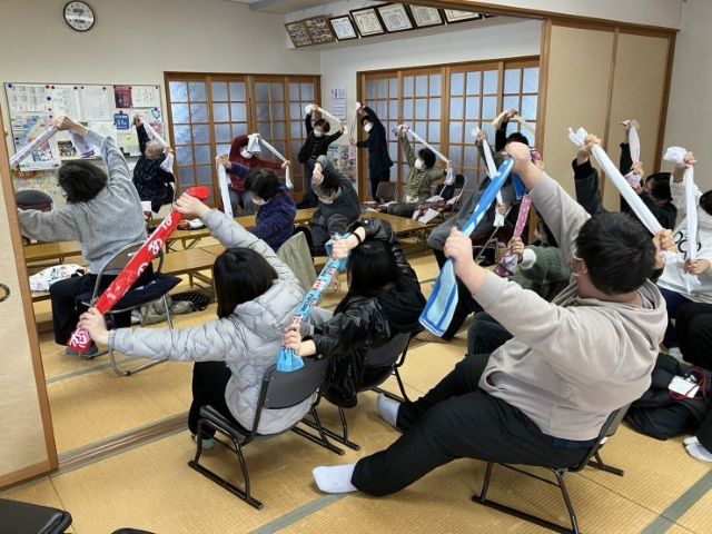 参加者の皆さんと一緒にキラピカ体操(*)を行い、その後の座談会では日々の生活の工夫や地域でのつながりについて直接お話を伺うことができました。地域で暮らす方々の生の声に触れる貴重な学びの時間となりました。