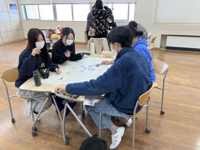 ふれあいサロンでの交流を終えた後、学生たちは地域に住む人々の暮らしを理解するため、滑川市内の小学校区(寺家小学校、西部小学校、南部小学校)を巡る散策も行いました。事前に暮らしに必要な情報を調べ、現地で確認した内容をもとにマップを作成し、発表まで行いました。