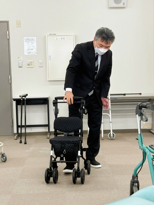 今回は、対象者や生活場面にあった補助具の準備などを学び、体験として、歩行補助具の合わせ方にチャレンジしました!