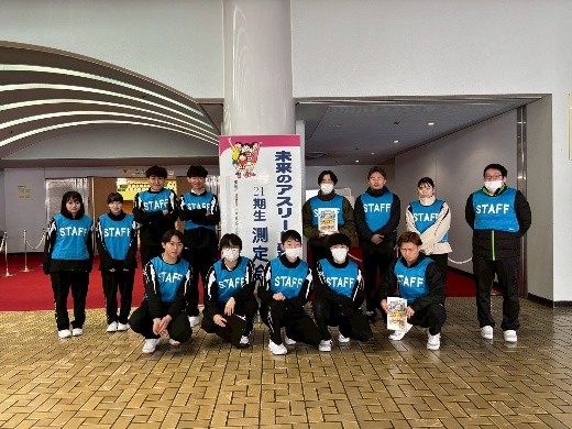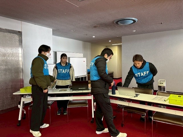 当校の学生は、午前はスタッフのミーティングに参加し、午後は実際に体力測定や補足ゲームの運営、データ入力などの業務を担当しました。マニュアルを基にしつつ、状況に合わせた判断を求められる中、それぞれができることを精いっぱい取り組んでいました。また、当日は積雪による交通事情への影響がありましたが、時間に間に合うように自分たちで連絡を取り合ったり、会場まで乗り合わせを調整する等、工夫している姿もみられました。