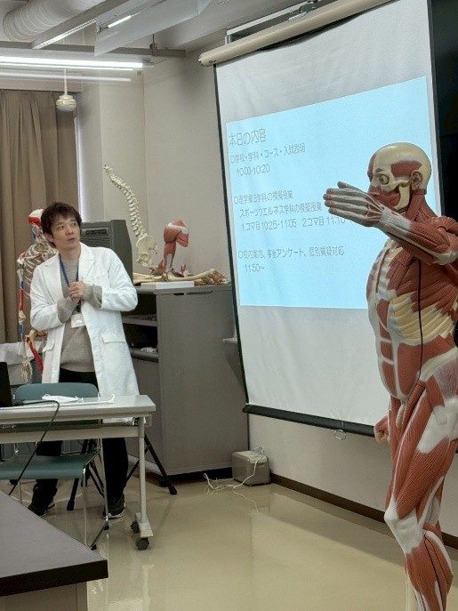 当日は、理学療法学科とスポーツウエルネス学科の教員が、学科の概要説明や模擬授業を行いました。当日の内容をご紹介します。